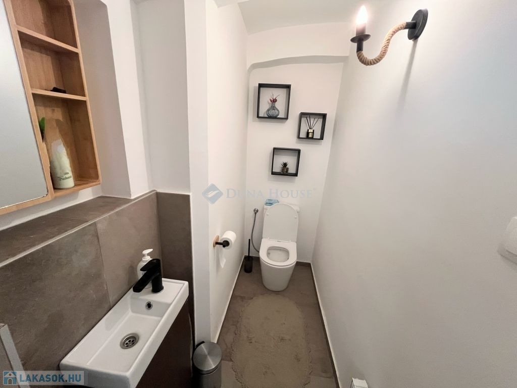Helyiségei: szoba, wc, fürdő, előszoba és amerikai konyhás nappali. Az ingatlan a teljes körű felújításon, 2024-ben esett át. A víz, villany és gázvezetékek, hideg-meleg burkolatok, szaniterek az aljzat szigetelés és nyílászárok mind megújultak, amik részletesen dokumentálva is vannak.