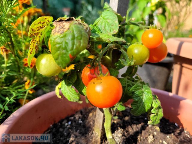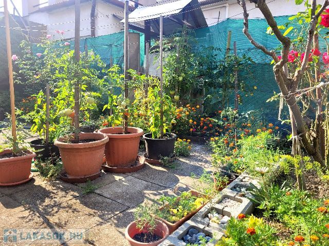 Az ingatlanhoz saját, kb. 100 nm-es terület tartozik, melyből kb. 55 nm-t kertként használnak, a többi tárolási lehetőségekből áll ill. 2-3 autó számára, fedett autóbeállót biztosít.
