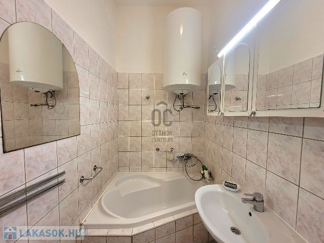 Az egyik fürdőszobában villanybojler, a másikban gázbojler szolgáltatja a melegvíz-ellátást.