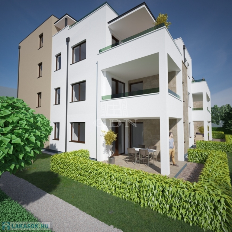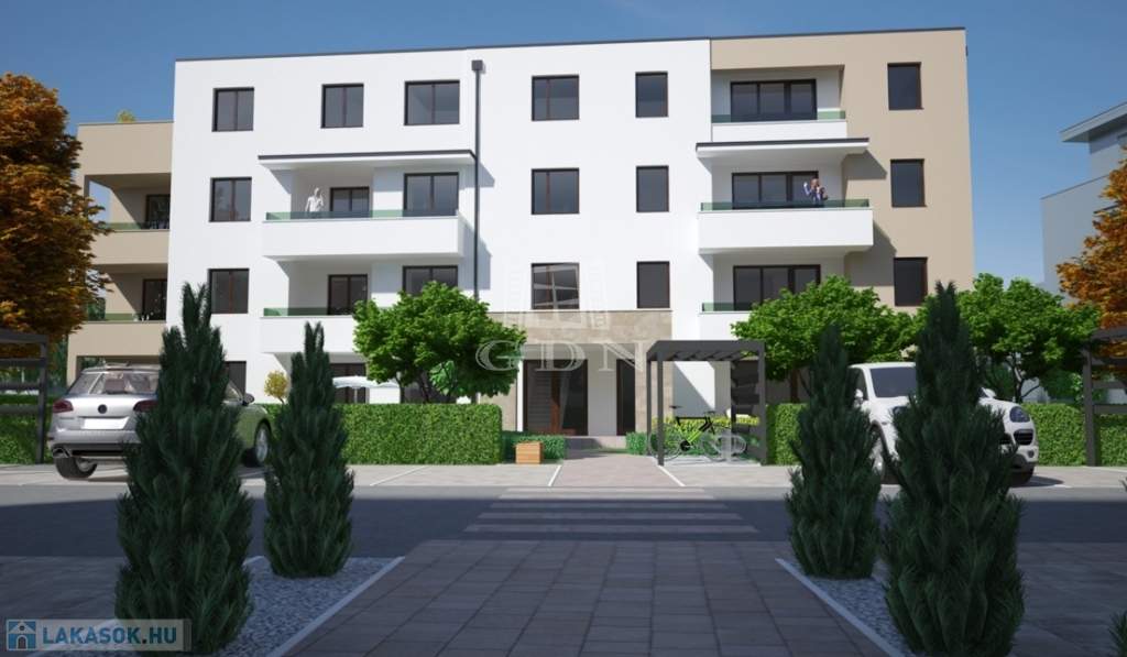 Szombathely kedvelt környékén, a belvároshoz közel, ám még is kellemes családi házas övezetben, még elérhetők új építésű lakások. Ez a projekt a Hunyadi János út-Vitéz utca-Szőllősi sétány által határolt területen kerül megvalósításra három ütemben. Az első két ütem már átadásra került. Teremgarázsban kialakított parkolóhelyeken kívül, felszíni parkolók vásárolhatók az ingatlanokhoz (teremgarázs nettó 7 millió Ft, felszíni parkoló nettó 1.2 millió Ft). A bekerített, sorompóval lezárt terület három gépkocsi ki-behajtóval fog rendelkezni, a Hunyadi és a Vitéz utca felé pozicionálva. Gyalogos sétány biztosítja a kijutást a Szőllősi sétányra. Magas műszaki tartalommal épített lakások melegét házközponti fűtés látja el, lakásonkénti hőmennyiség mérővel, padlófűtéses hőleadással. Ezenkívül hűtő- fűtő klíma biztosítja a kellemes hőmérsékletet az ingatlanokban. Az itt épülő lakások 57-88 m2 -es 3-4 szobás kialakításúak. Minden igényt kielégítő felszereltségű erkélyes, teraszos ingatlanok alkalmasak nagy családosoknak, pároknak, befektetőknek egyaránt. Beltéri ajtók, szaniterek, burkolatok választhatók. A lakópark akadálymentesített, a földszinten közös kerékpártároló, valamint szintenként saját tárolók is elérhetők. A hirdetésben szereplő lakás főbb paraméterei: Második emelet 16. A lakás 69 m2, terasza 14 m2.