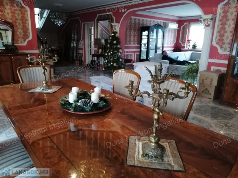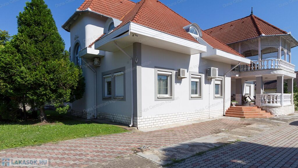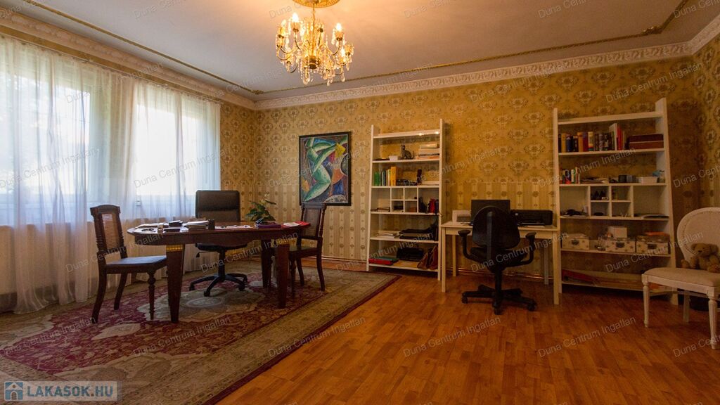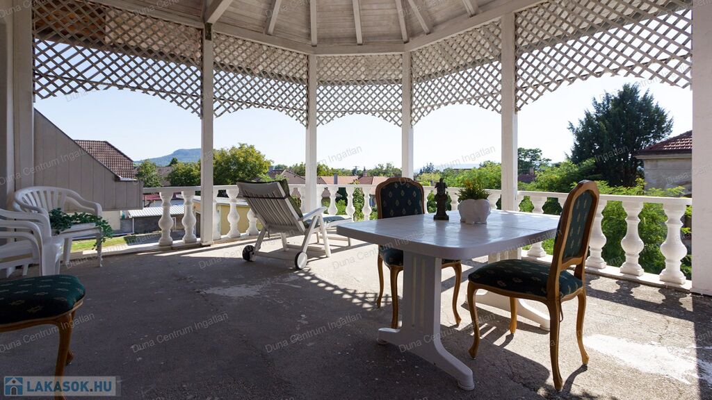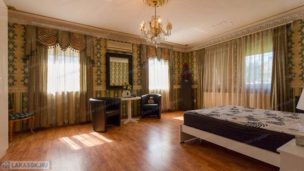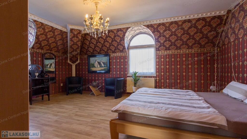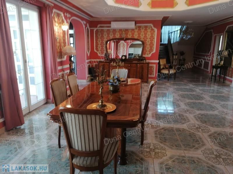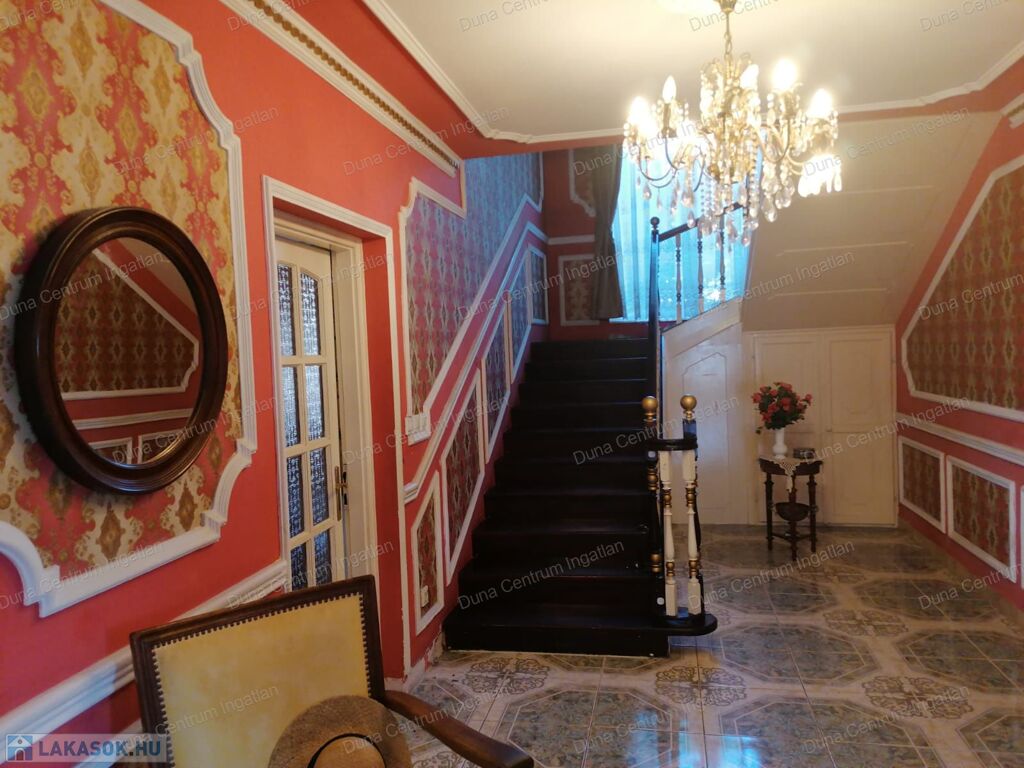 Tapolcán központhoz közel , mégis csendes helyen található tágas , egyedi villa eladó. Az ingatlan elhelyezkedése kiváló, sétatávolságra van minden napi igényt kielégítő bevásárlási lehetőség, szupermarketek, valamint éttermek, bankok, a jól ismert tapolcai tó, stb. A Balaton kb.11 km-re található. A ház kétszintes , amelynek 440 m²-es lakóterében két hatalmas nappali, hat tágasc hálószoba , két fürdőszoba, egy jól felszerelt konyha található. Az ingatlanra jellemző a boltíves, stukkó mennyezetű nagy szobák és a nyitott kialakítás, ahonnan két emeletre nyílik kilátás. A földszinti nappaliból két dupla ajtó vezet az alsó teraszra, innen pedig a kertbe. Az emeletre kényelmes lépcsőn lehet feljutni, tágas előszobával. Itt található még egy nyitott nappali és hálószoba, valamint egy gyönyörű, fedett terasz.