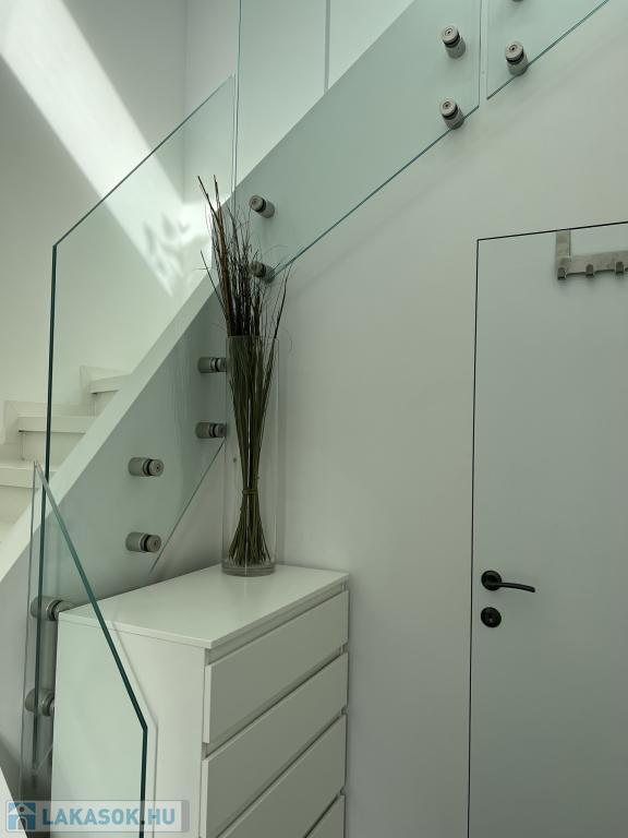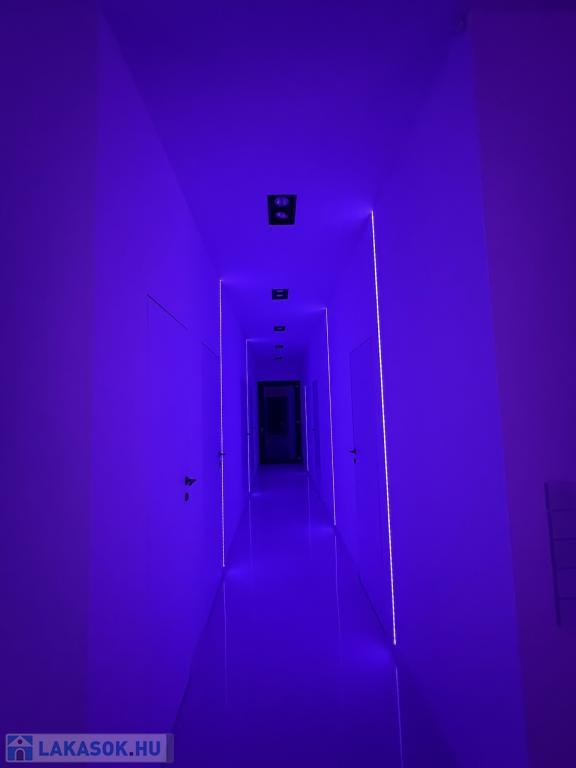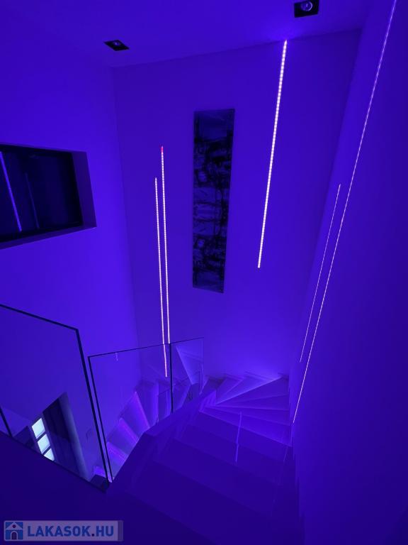 -A lépcsőház egyedi kialakítású , olasz fiandre kőporcelán burkolással, ledes megvilágítással.