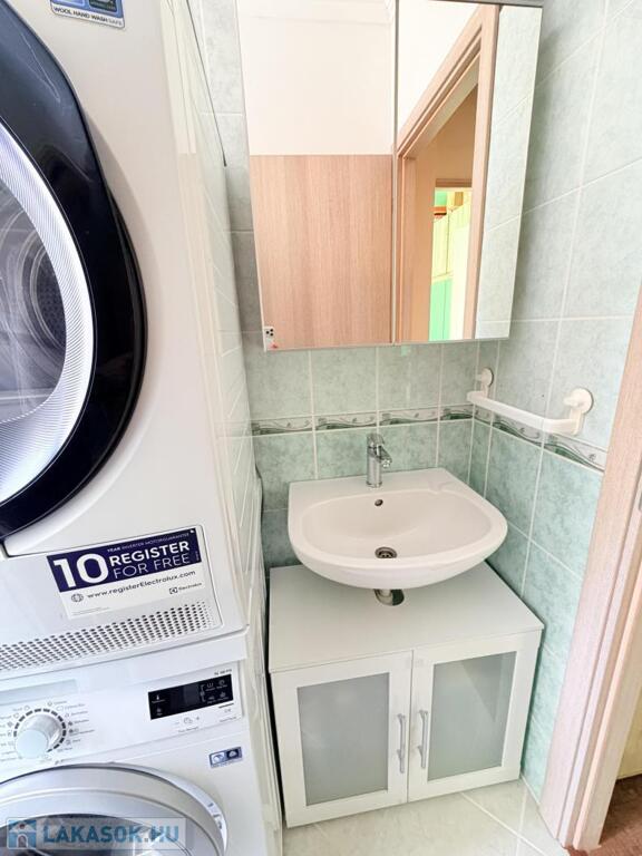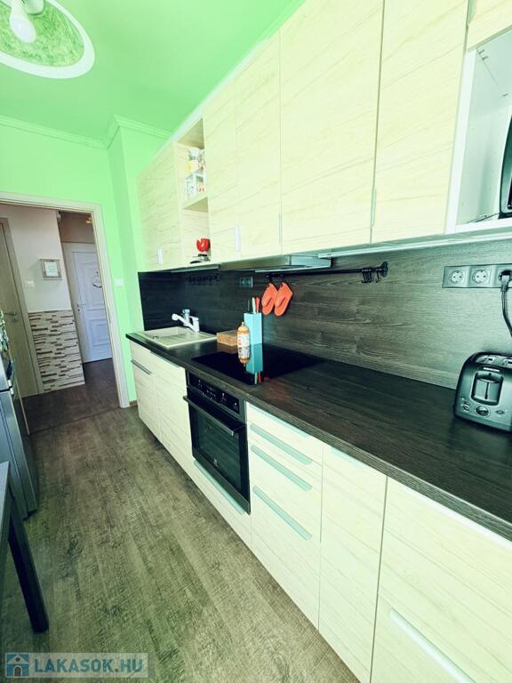 A konyhába igényes, beépített konyhabútor került Electrolux konyhai gépekkel, kivezetett szagelszívóval. A melegburkolatos helyiségekben vinyl burkolat, az egész lakásban új beltéri ajtók kerültek beépítésre.