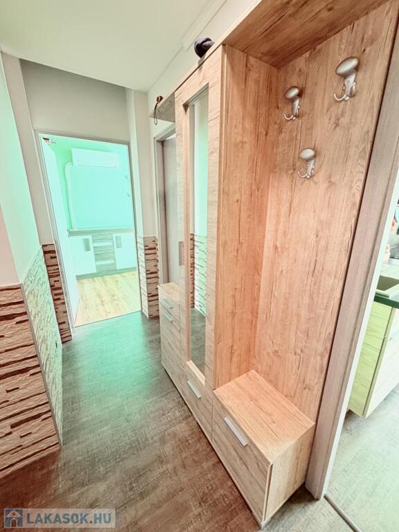A nyílászárók műanyag ablakok, redőnnyel felszerelve. Az épület műszaki állapota jó: a társasház szigetelt, a lépcsőház rendezett, műanyag nyílászárós, a tető pedig 20 cm-es hőszigeteléssel rendelkezik. A lakáshoz külön tároló is tartozik.