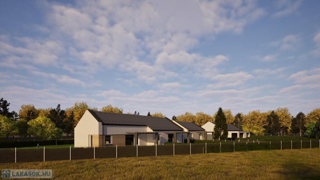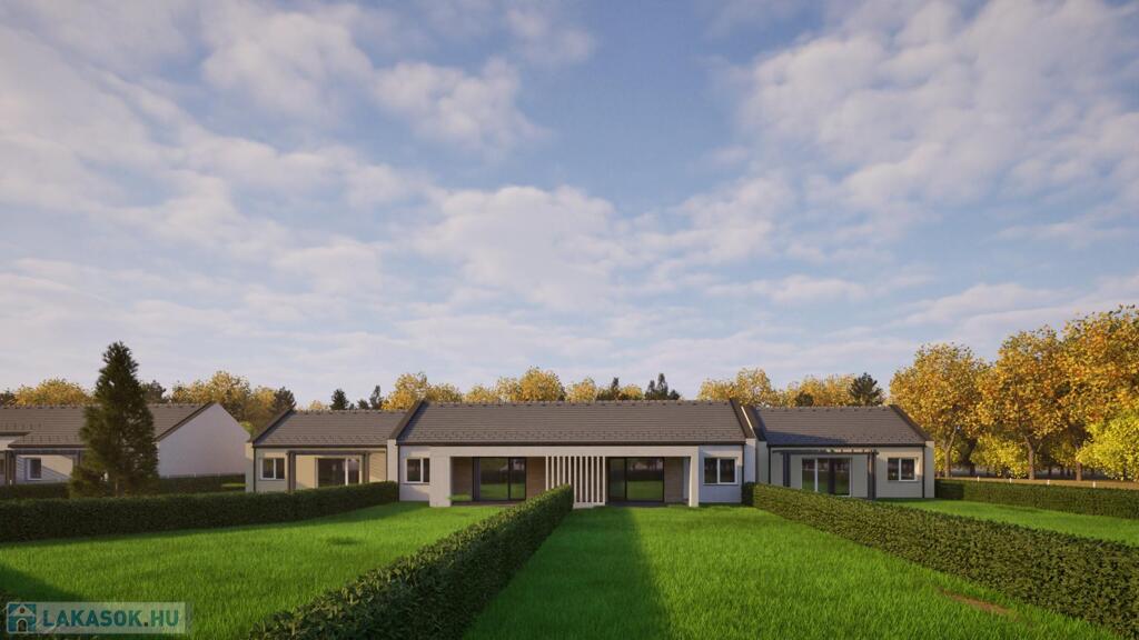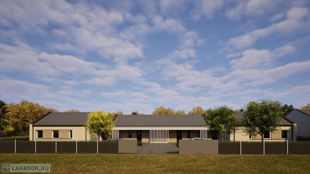 A most kialakuló lakóparkban 2 telken egy 4 egységből és egy 2 egységből álló (összesen 6 db lakás) összeépített sorházi lakások kerülnek kialakításra. (CSOK + HITELRE alkalmas)