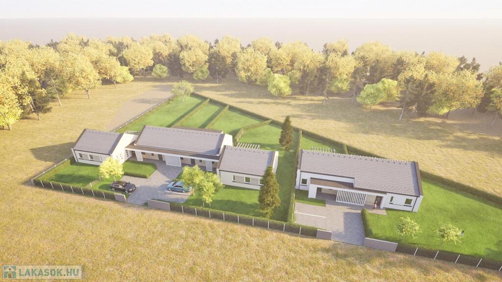 A most kialakuló lakóparkban 2 telken egy 4 egységből és egy 2 egységből álló (összesen 6 db lakás) összeépített sorházi lakások kerülnek kialakításra. (CSOK + HITELRE alkalmas)