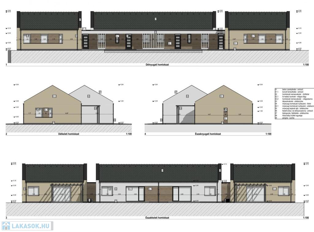 -2-es lakás: 69,23nm + 15,66nm terasz (nappali + 3 hálószoba)+389nm saját kertkapcsolat