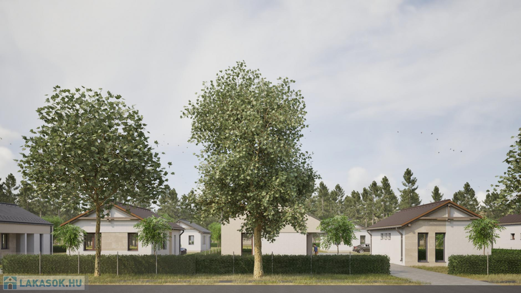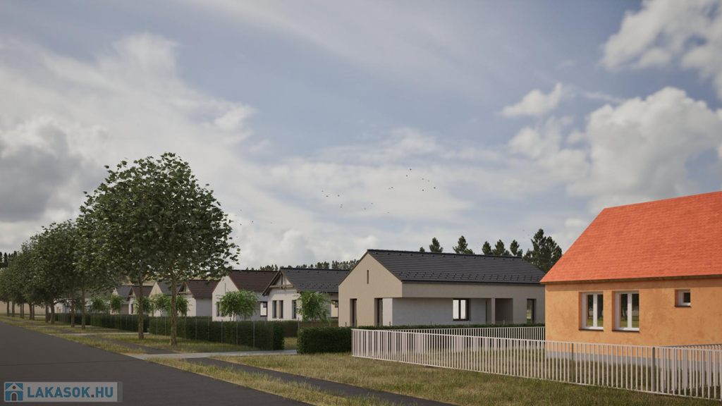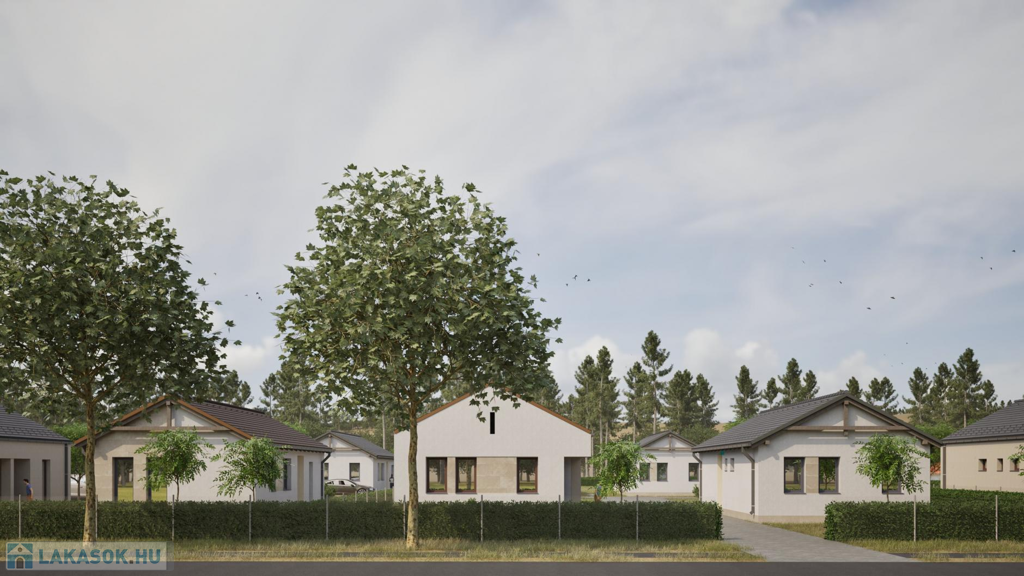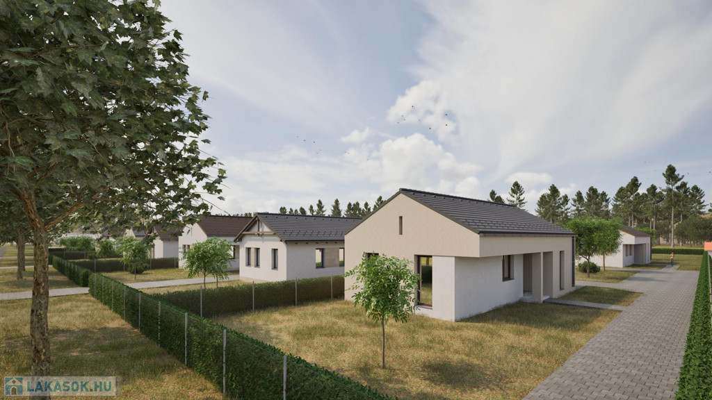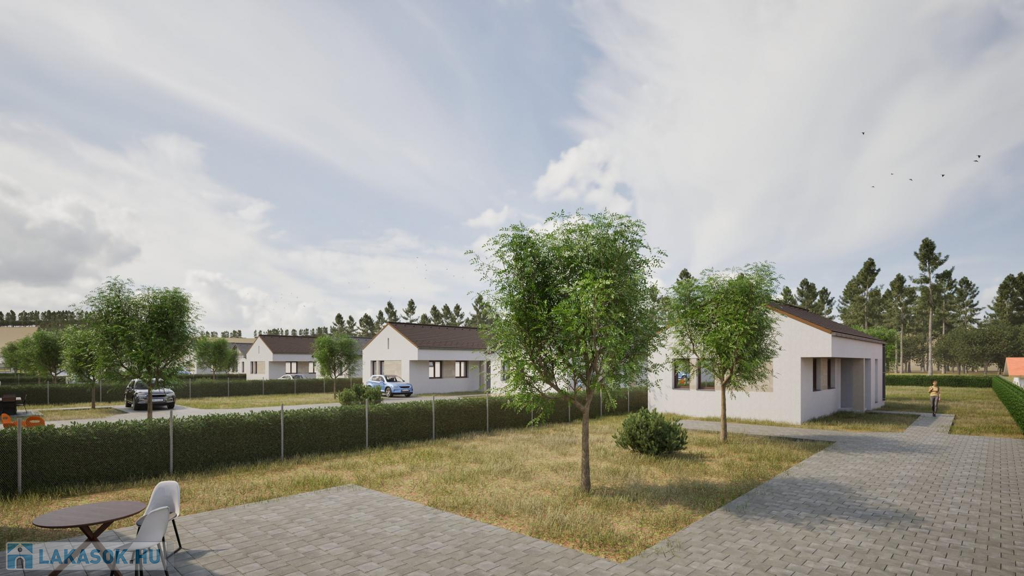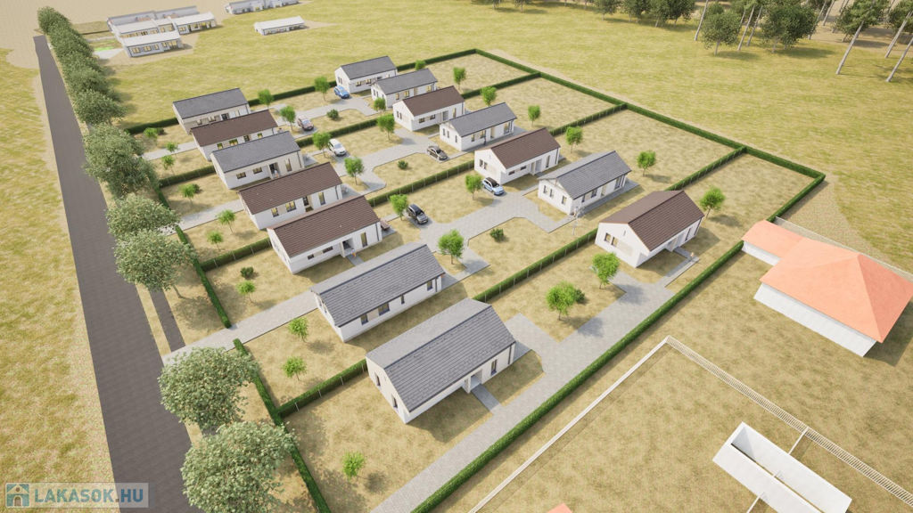 A most kialakuló lakóparkban 7 telken 2-2 egységből álló (összesen 14 db lakás) szabadon álló sorházi lakások kerülnek kialakításra. (CSOK + HITELRE alkalmas)