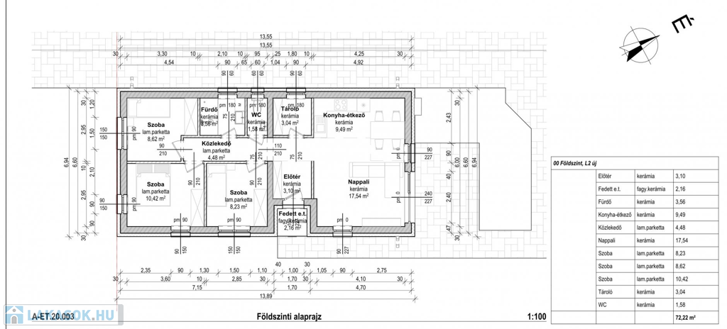 -2-es lakás: 72,22nm + 16nm terasz (nappali + 3 hálószoba)+673m saját kertkapcsolat