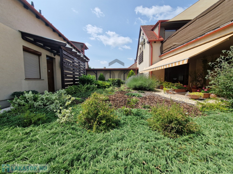 A társasház rendszeresen karbantartott kertjét profi kertész gondozza, így a lakók mentesülnek az udvar rendben tartásának terhei alól.