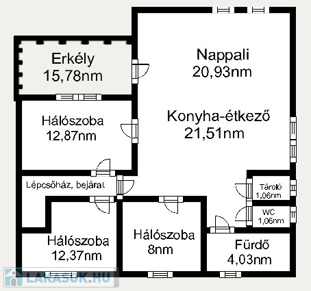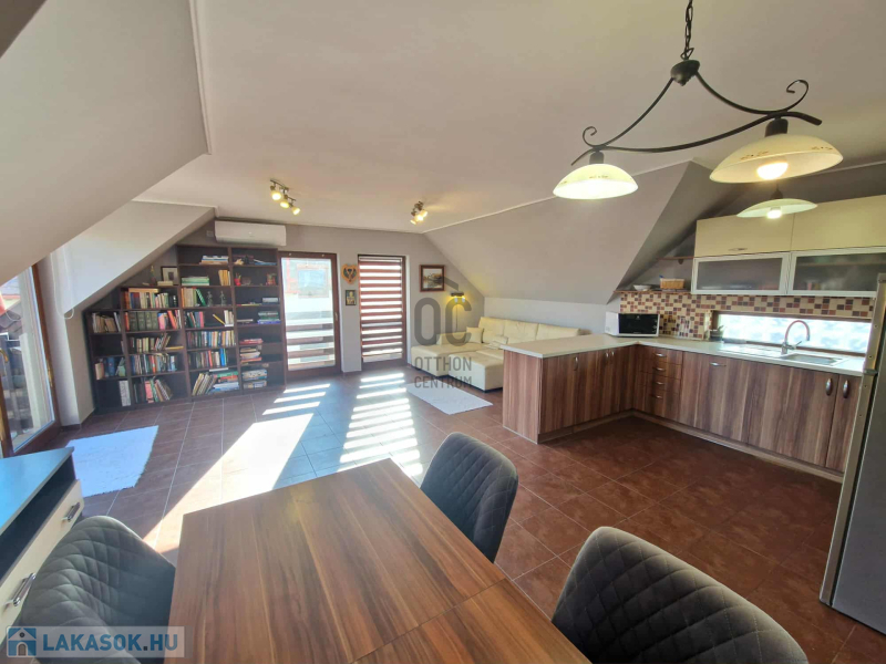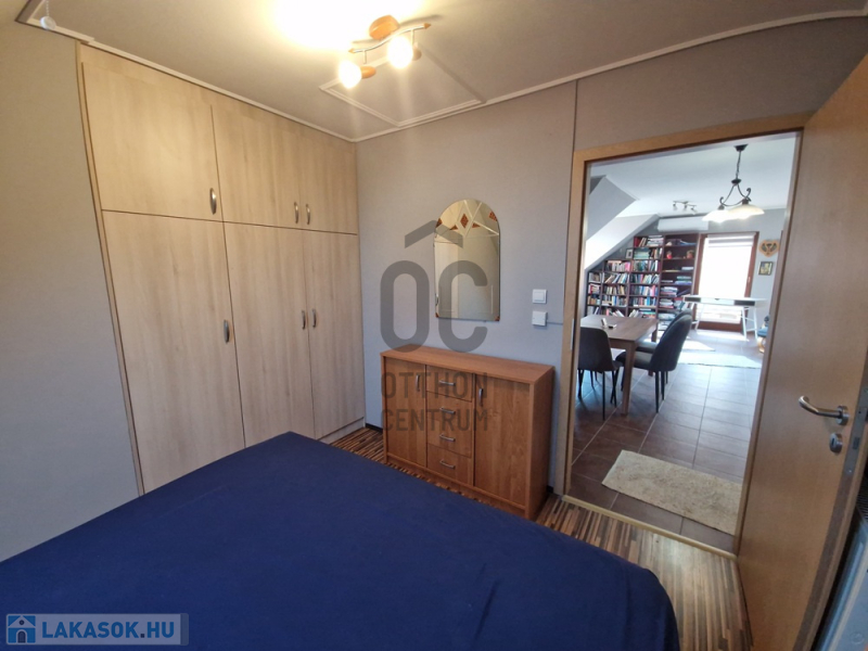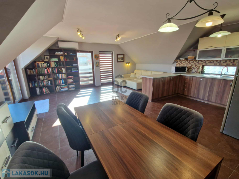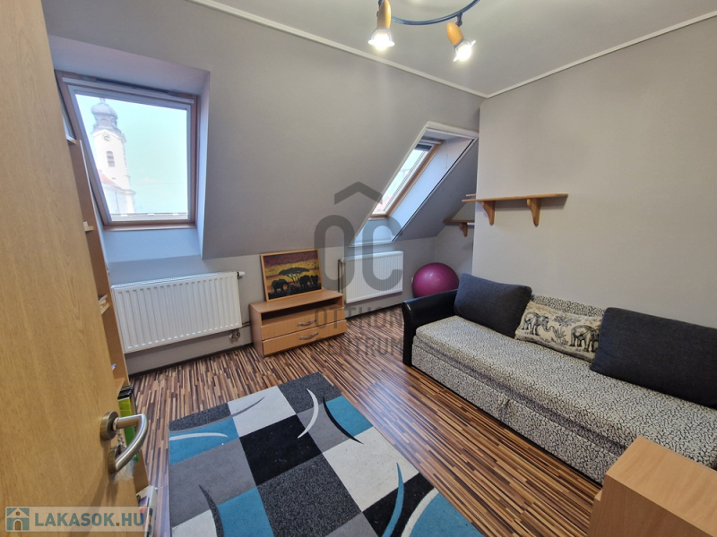Az ingatlan három külön nyíló hálószobával és egy tágas amerikai konyhás nappalival rendelkezik. Az elosztása kiváló, hiszen minden szoba önállóan megközelíthető. A nappaliból egy 15 nm-es erkélyre léphetünk ki, ahonnan gyönyörű kilátás nyílik a Kálvária-dombra.