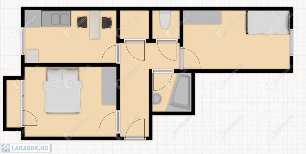 -Két tágas, külön nyíló szobával rendelkezik.