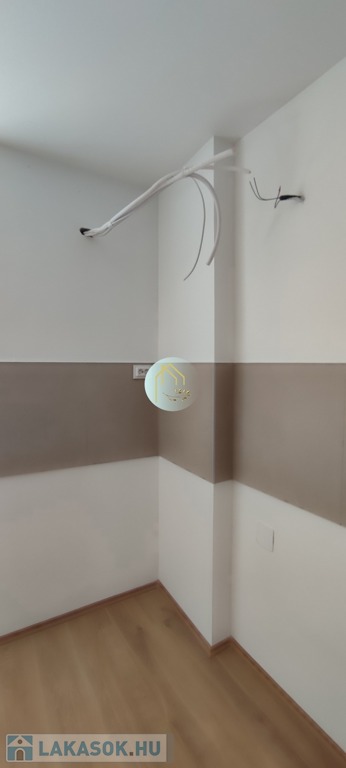 Konyhabútor helye kialakítva, víz kiállások, külön mosogatógépnek is, szennyvízelvezetés, gipszkartonos mennyezet led világítással felszerelt.