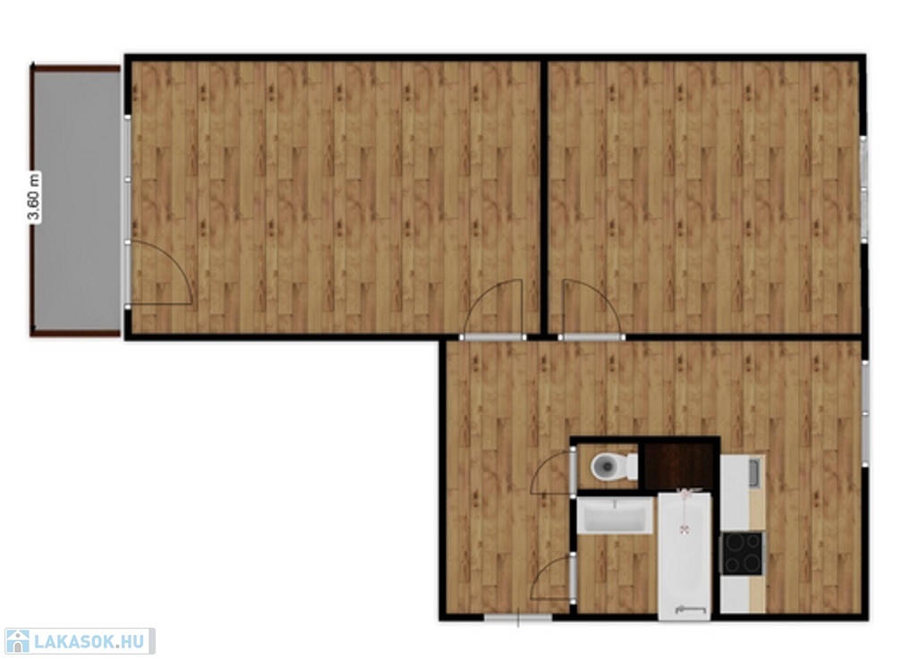 A lakás elrendezése praktikus: a tágas előtérből külön nyílik a két nagy szoba, a világos konyha, a modern fürdőszoba és a külön WC (kézmosóval). A nappali napfényes és erkélykapcsolattal rendelkezik, itt egy dekoratív olajkandalló is helyet kapott, ami hangulatos kiegészítője a térnek.