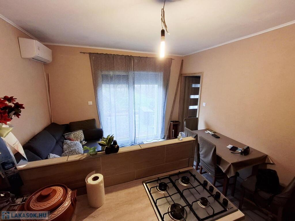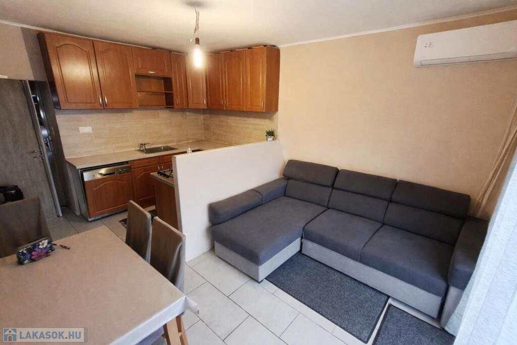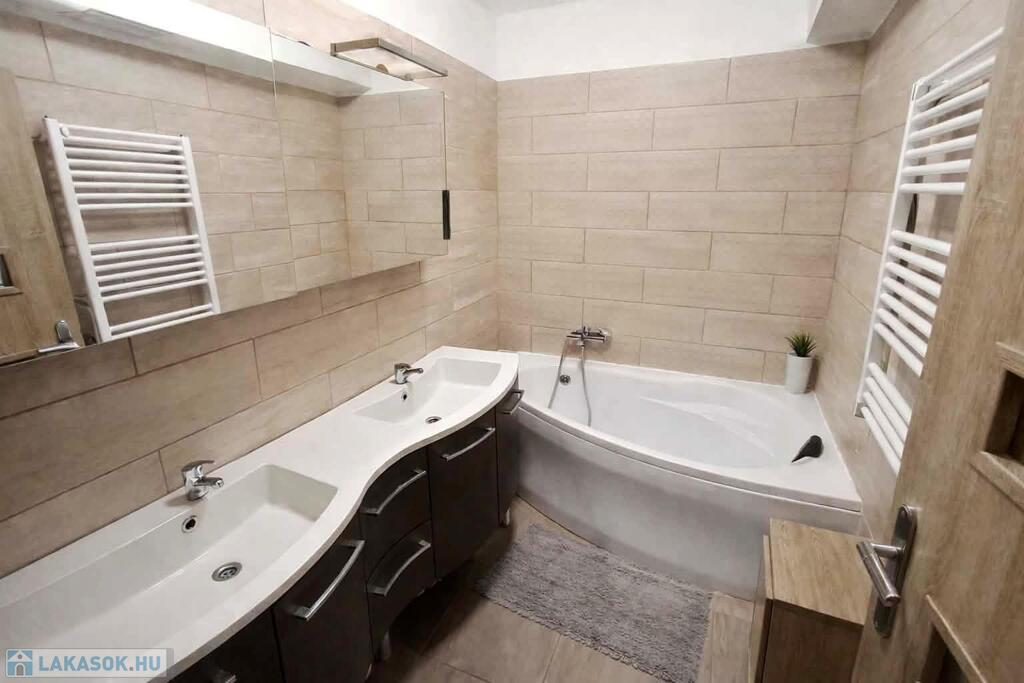 2025-ben a teljeskörű felújítás során a teljes víz- és villanyvezetékek cseréje megtörtént, a burkolatokat is kicserélték, így kellemes és igényes hangulatú a lakás. Az átalakításnak köszönhetően az amerikai-konyhás nappalin kívül még 2 hálószoba került kialakításra, a fürdőszobát is teljesen felújították: dupla mosdókagyló és kényelmes sarokkád került beépítésre. Az illemhely a fürdőtől külön helyiségben található, amelyben a kibővítésnek köszönhetően a mosókonyhaként is funkcionál. A lakásban egy tágas kamra is helyet kapott. Az elektromos hálózatot kibővítették, éjszakai áram is van és a H tarifa kiépítése is megkezdődött. A nappaliba hűtő-fűtő klíma került beépítésre, a lakásban ezen kívül még elektromos panelek gondoskodnak a fűtésről. A melegvizet új villanybojler biztosítja. Az ablakok 3 rétegű műanyag nyílászárok, redőnnyel és szúnyoghálóval felszereltek. A nappaliba tolóajtós teraszajtó és elektromos redőny került beépítésre. A lakás 10 cm vastag külső szigetelést kapott.