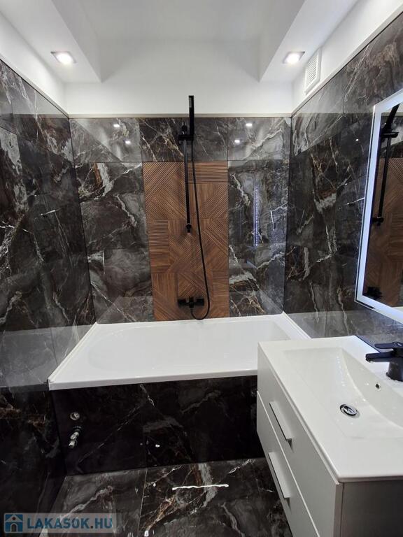 Az ingatlan teljeskörű felújítása során a víz- és villanyvezetékek, valamint a külső és belső nyílászárók cseréje is megtörtént. A szobákba és a konyhába prémium minőségű laminált padló került, kellemes és igényes hangulatot kölcsönözve a lakásnak. A többi helyiségbe fekete gránit mintás lapok kerültek. Új konyhabútor, több helyiségben rejtett világítás teszi egyedivé a lakást, a klíma, tv és internet kábel mindkét szobában előkészítve. A fürdőszoba és a mellékhelyiség is teljeskörű felújításon esett át, új szaniterek, minőségi burkolatok. A képek magukért beszélnek!