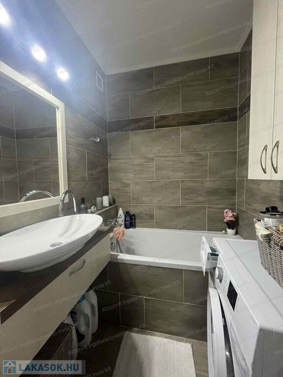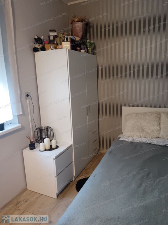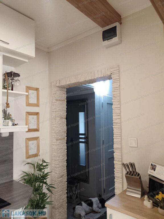 Az ingatlan egy 10 emeletes társasház 4. emeletén található, egyedileg átalakított, teljeskörűen felújított, 2 szobás, 53 m2-es. Helyet kapott benne konyha-étkező-nappali, hálószoba, kisszoba, előszoba, fürdőszoba, WC. A szobák laminált parkettával, a többi helyiség járólappal burkolt. Az otthon melegéről és a háztartási meleg vízről távhő gondoskodik, a hőleadás radiátorokkal történik. A fürdőszobában kád ad lehetőséget a felfrissülésre, lazulásra. A felújítás során cserére kerültek a víz és villanyhálózatok, korszerűsítve lett a fűtésrendszer, cserélve lettek a külső és belső nyílászárók. Az ablakok redőnnyel és szúnyoghálóval felszereltek. A megfelelő hőmérséklet beállításához klímaberendezés biztosított. További tárolásra a lépcsőházban található közös tároló biztosít helyet.