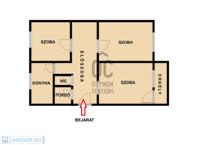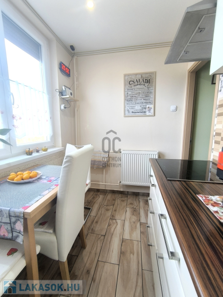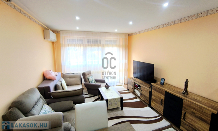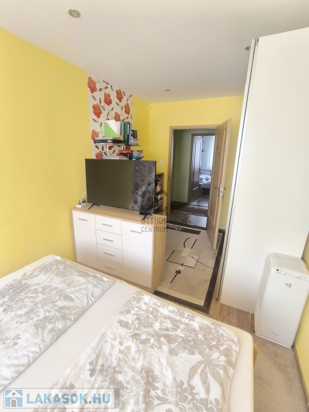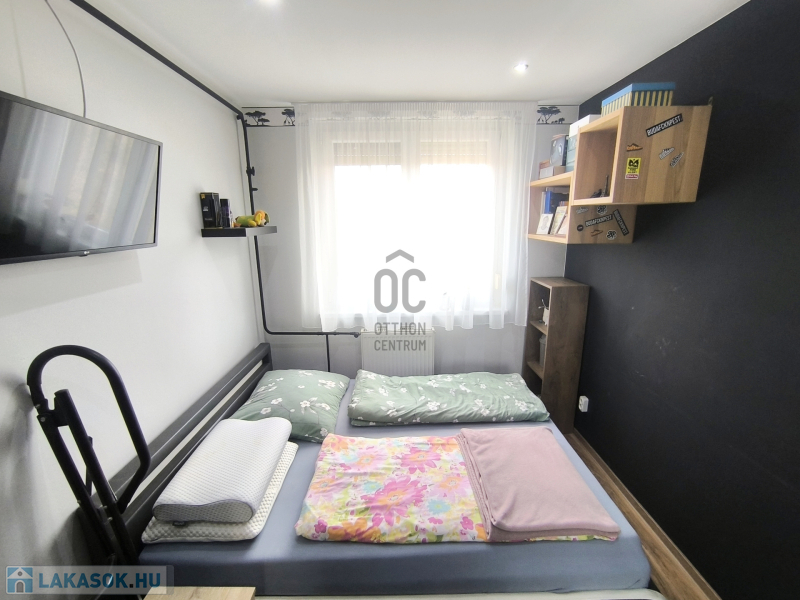 A lakás méretéből adódóan ideális lehet családosoknak, ahol a gyerekszoba mellett saját hálószobájuk is lehet a szülőknek.