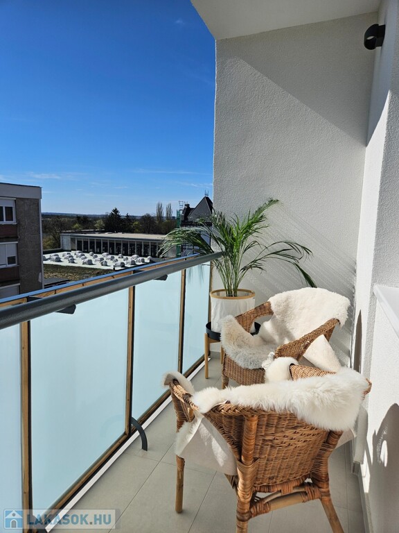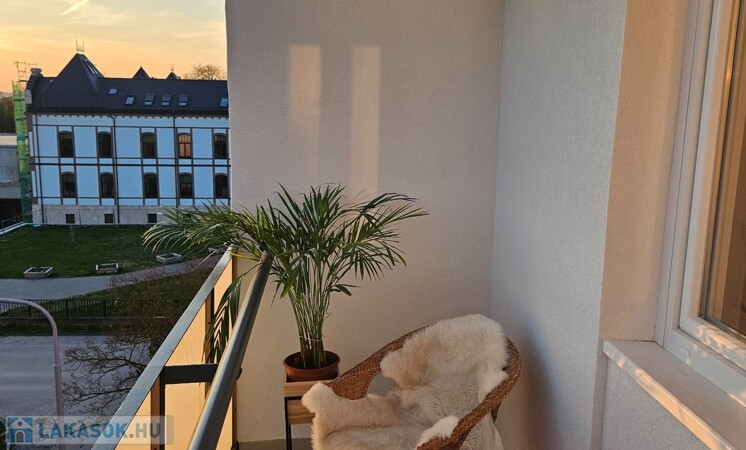 A lakáshoz tartozik egy közel 5 m²-es erkély és egy kb. 3 m²-es saját tároló is.
