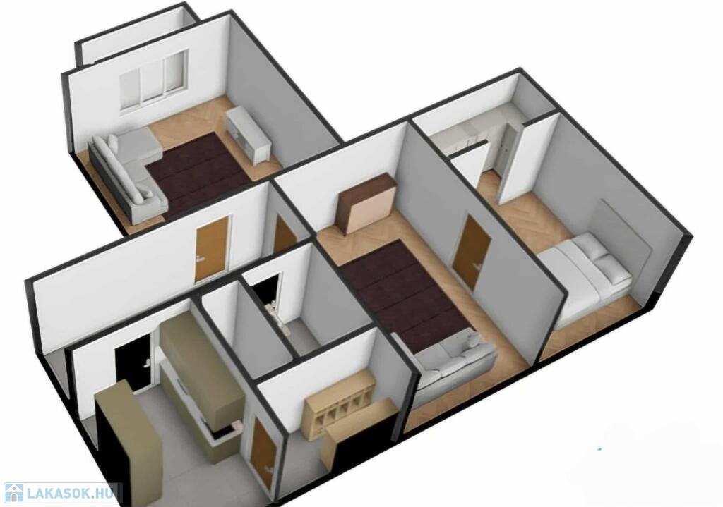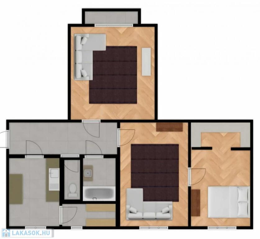 Kiváló elosztás: 3 tágas szoba + gardrób + kamra – itt mindenki elfér!