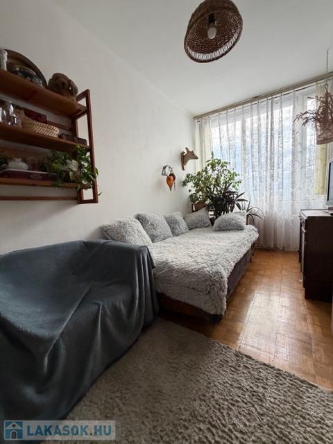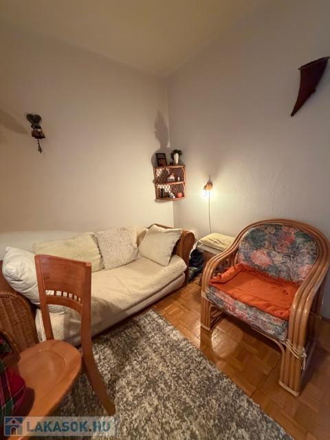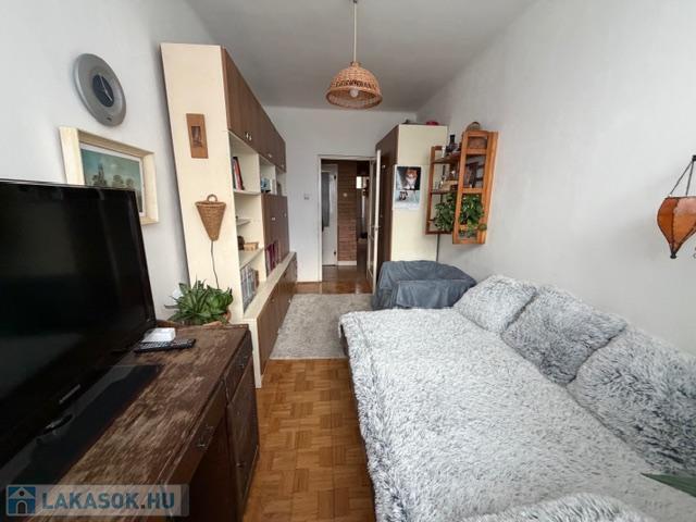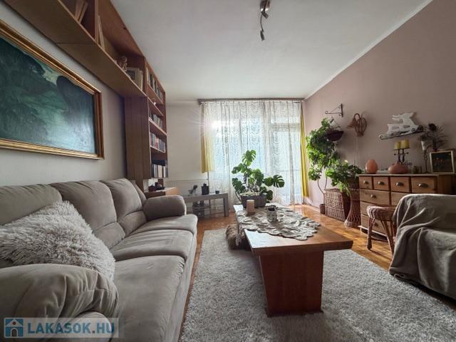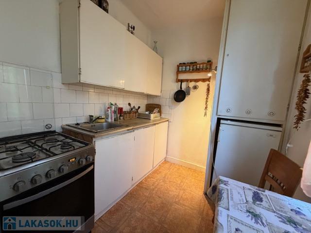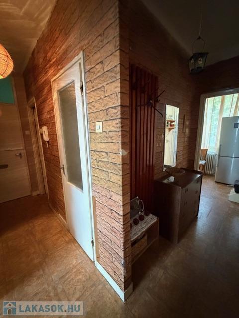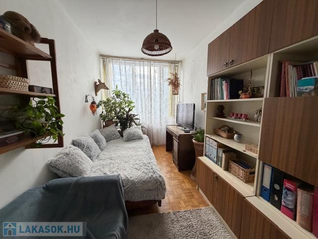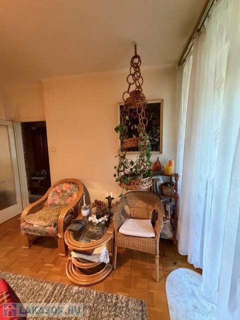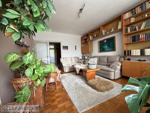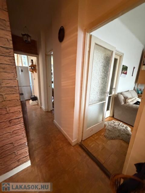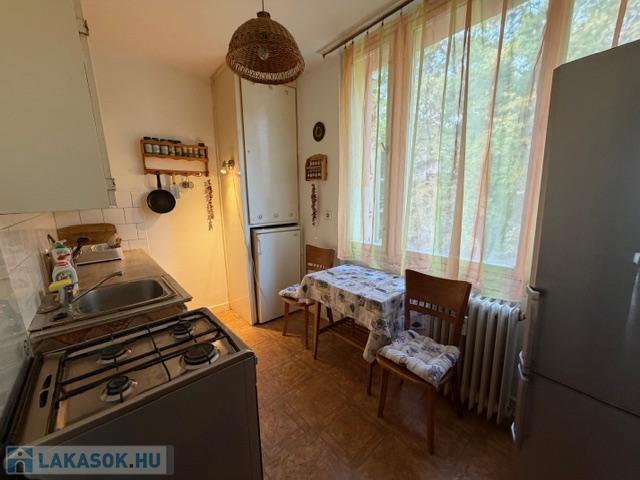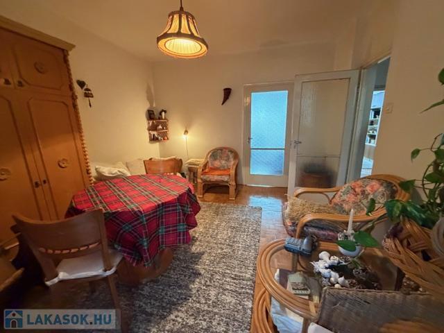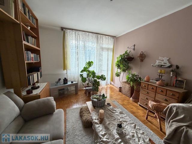 A négy szintes téglaépület 2. emeletén található az ingatlan, két tágas hálószobával, nappalival, konyhával, fürdőszoba és WC áll rendelkezésre. A nappaliból és a hálószobából is egy-egy hangulatos erkély nyújt lehetőséget a pihenésre, a konyha pedig a hátsó parkosított részre nyújt kilátást. A konyha viszonylag tágas, napfényes, praktikus kialakítású, étkezővel, beépített konyhabútorral. A nyílászárók még cserélve nem lettek, régi típusú fából készült, de jó állapotú. A lakásban a folyosón, konyhában, fürdőben hagyományos hidegburkolatok, a szobákban régi típusú szalagparketta funkcionál burkolatként. A lakás melegen tartása társasházi központi fűtésről történik a helyiségekben radiátorokkal. A lakáshoz tartozik egy saját tároló a földszinten. A lépcsőház rendezett, jó lakóközösséggel.