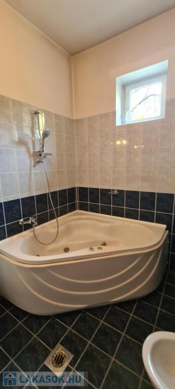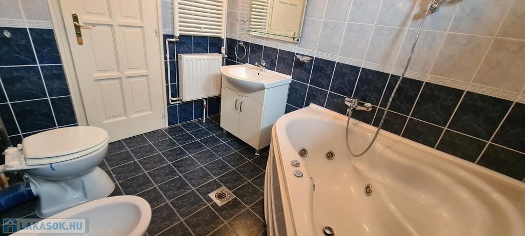 A fürdőszoba tágas, sarokkádas, 2 ablakon keresztül is érkezik be fény, törölközőszárító radiátorral és bidével is felszerelt.