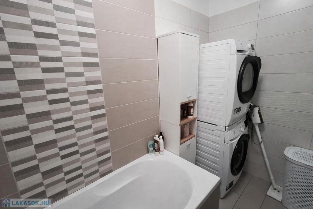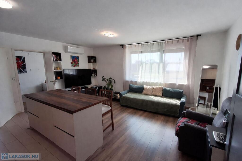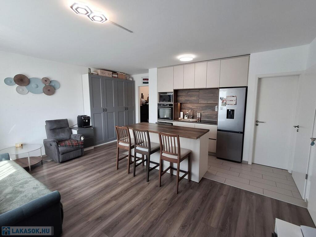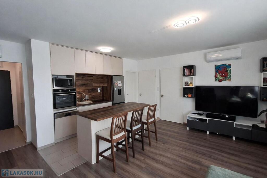 A 3. emeleti lakás 56 nm-es lakótérrel és 4,3 nm-es erkéllyel rendelkezik, mely a hálószobából nyílik. Az épület 30 cm-es vázkerámia téglából és 16 cm-es EPS szigeteléssel épült. A lakás fűtéséről házközponti távhő gondoskodik, padlófűtés rendszeren keresztül, minden lakás saját mérőórával rendelkezik. A műanyag nyílászárók háromrétegű üvegezéssel és redőnnyel kerültek beépítésre. A lakás hűtő-fűtő split klímával felszerelt. A modern, gépesített konyhabútor a konyhaszigettel a vételár részét képezi valamint a meghirdetett vételár tartalmazza a felszíni gépkocsi beállót és a saját tárolót is!