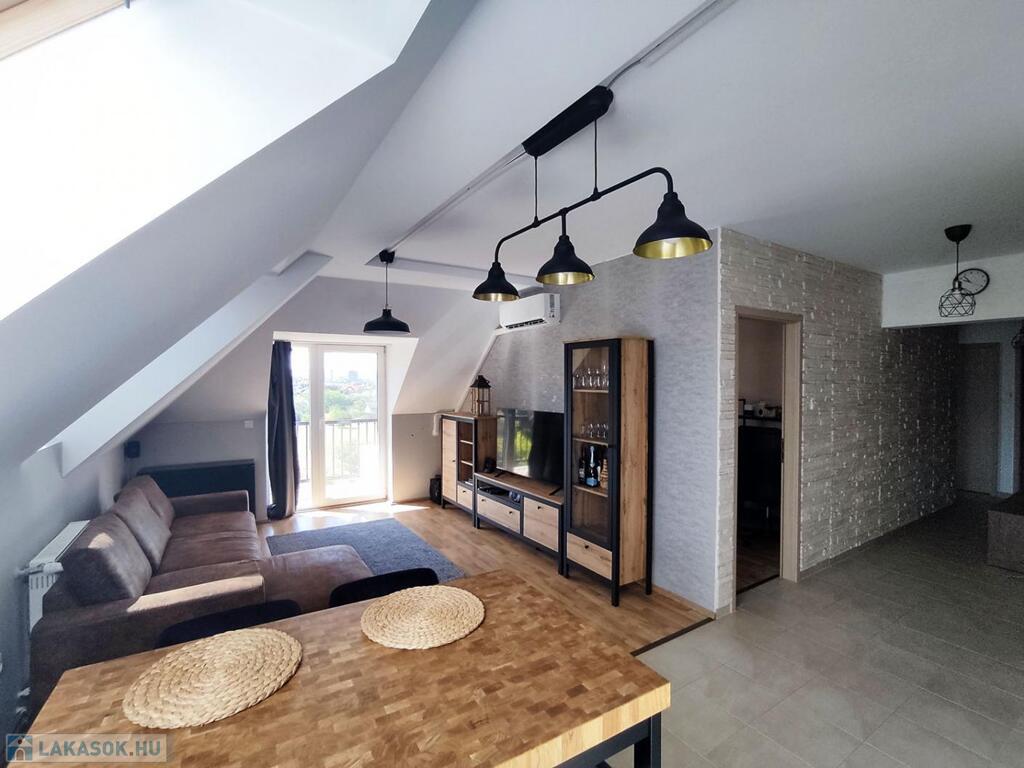 A lakás a harmadik emeleten található, három ízlésesen berendezett hálószoba, egy tágas amerikai konyhás-nappali és két nagyméretű fürdőszoba áll rendelkezésére a leendő tulajdonosnak a mindennapok eltöltéséhez. Az egyik fürdőszobában beépített kád, a másikban zuhanyzó, minőségi burkolatok és szaniterek találhatók. A szobákban laminált parketta, a konyhában és a fürdőben hidegburkolatok funkcionálnak padlóként. A két erkélyről páratlan panoráma nyílik a Gerecsére, ahol kipihenheti a hétköznapok fáradalmait. A magasfényű IKEA-s konyhabútor praktikus kialakításával, beépített gépekkel, indukciós sütővel és páraelszívóval élménnyé fogják tenni a konyhában töltött időt. A nyílászárókon redőny található, Velux árnyékolóval és szúnyoghálóval felszereltek. A tetőtér 20 cm-es gyapot, tükörfóliás szigetelést kapott, valamit egy hűtő-fűtő klíma is beszerelésre került, ami még kellemessebbé teszi a hőérzetet a téli és a nyári időszakban egyaránt.