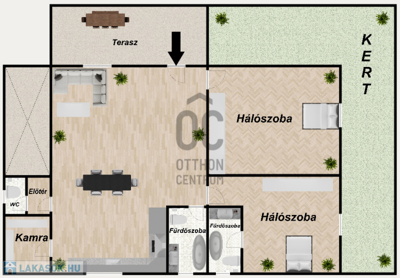 - SAJÁT KERT + TÁGAS LAKÁSTÉR