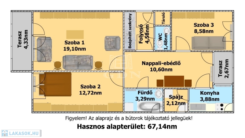 - továbbá van még 2 erkély is, melyek esetleges beépítésével további 7 nm-rel növelhető a belső hasznos terület.