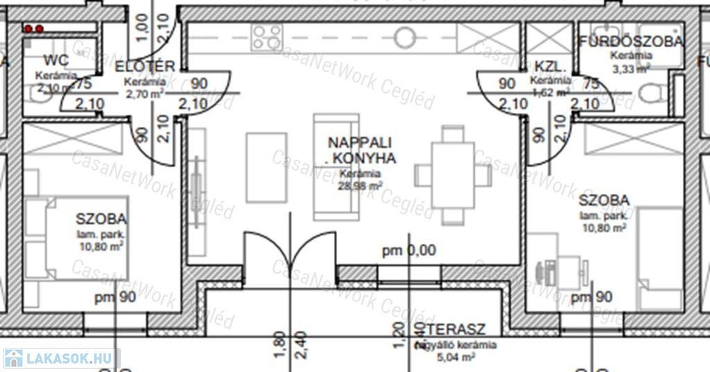 A hirdetett lakás: földszint 2-es lakás: fűtött lakótér: 60,33 nm + 5,04 nm terasz