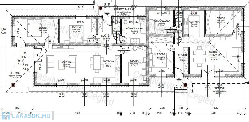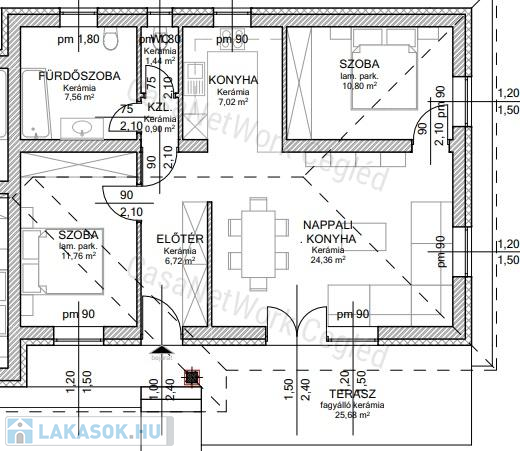 A hirdetett lakás: A. lakás: fűtött lakótér: 70,56 nm + 25,68 nm terasz
