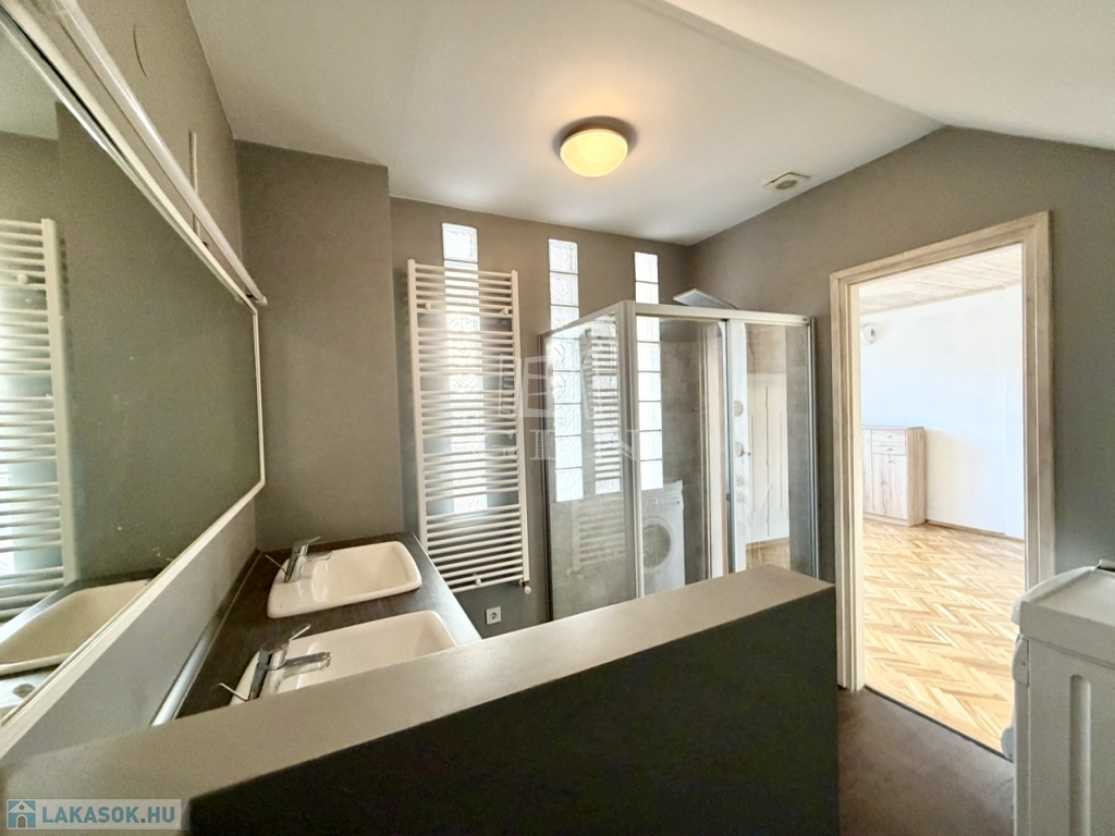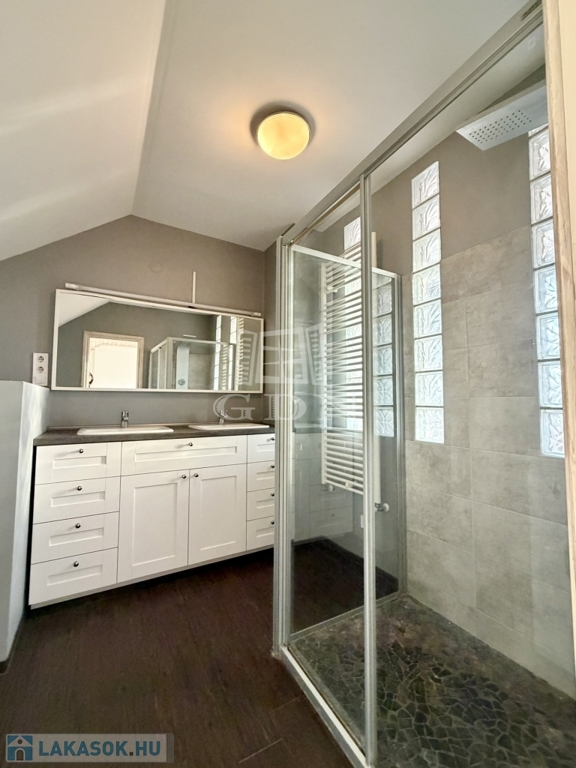 • Fürdőszobák: 2019-ben teljes felújításkor, vízvezetékek cseréje is megtörtént; alsó szinten kádas fürdő, a felső szinten dupla mosdóval, WC-vel, kényelmes zuhany fülkével.