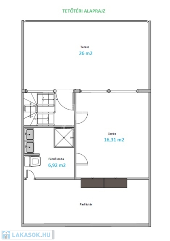 - panorámás terasz : 26 m2,
