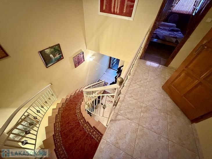 A földszinten található egy előszoba, tágas amerikai konyhás nappali, egy külön nyíló szoba, egy fürdőszoba WC-vel, valamint egy praktikus tárolóhelyiség is. Az emeleten három egymástól külön nyíló hálószoba található, továbbá egy fürdőszoba és egy külön WC szolgálja a lakók kényelmét.
