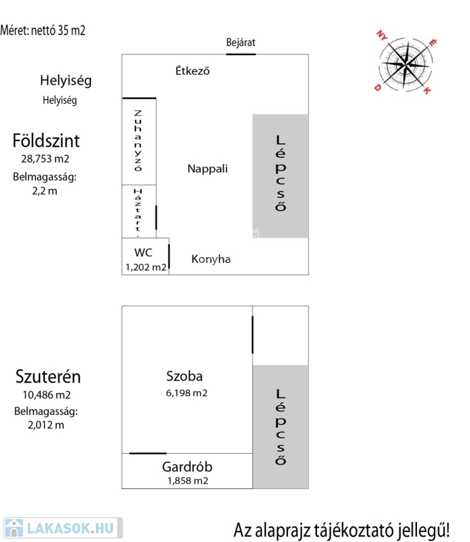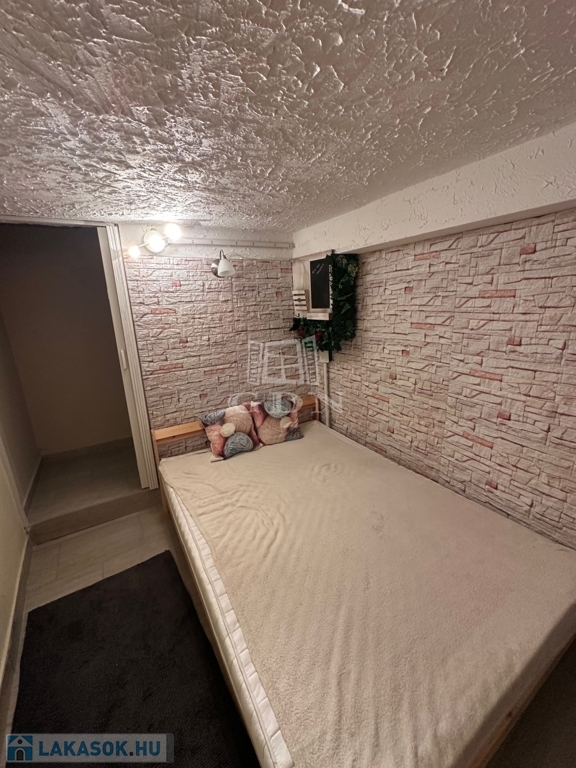 Az ingatlan két szintes, a felső szint 28,753 m2, és alatta található még egy szuterén (10,486 m2) helyiség, megosztva, jelenleg szoba és egy gardrób.