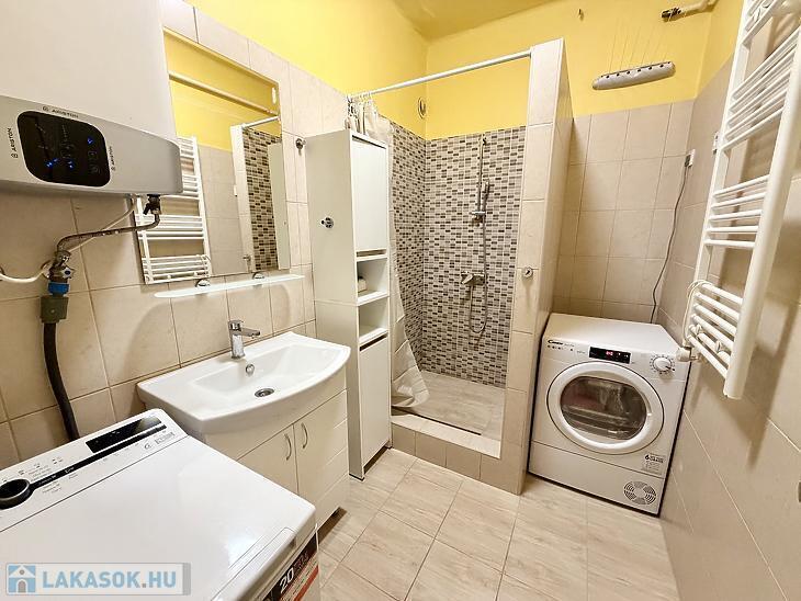 A lakáshoz saját tároló és gépkocsi-beálló is tartozik, ami ritka előny a belvárosi környezetben. A közlekedés rendkívül kedvező: a buszmegálló mindössze 50 méterre, a vasútállomás pedig 600 méterre található, így Budapest és a környező települések is könnyen megközelíthetők. A közelben bevásárlóközpont, gyógyszertár és orvosi rendelő is megtalálható, így minden fontos szolgáltatás pár perc alatt elérhető.