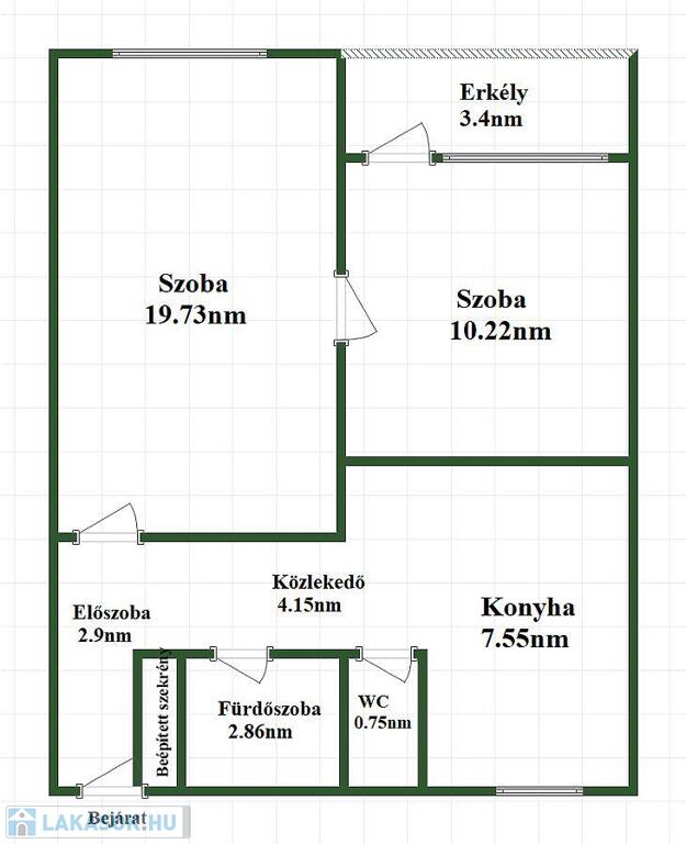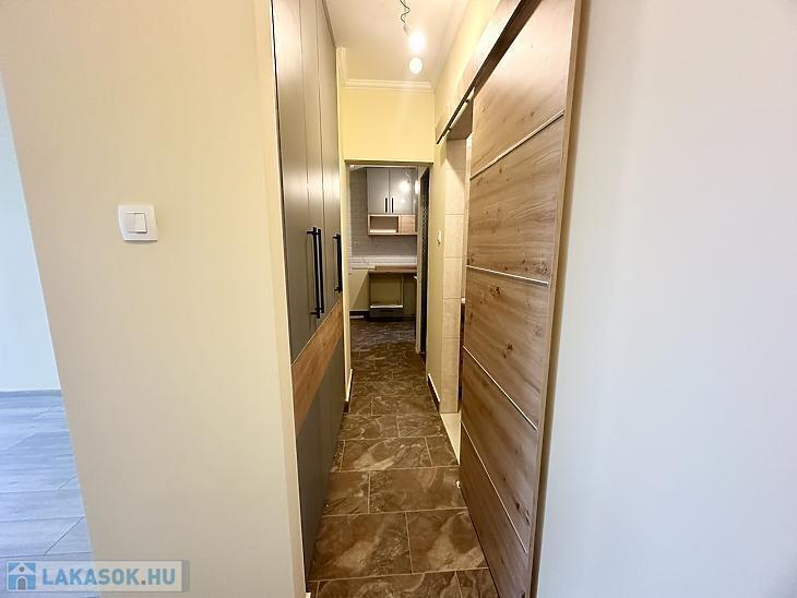 Az ingatlan elosztása rendkívül praktikus és jól átgondolt: előszoba, két világos szoba, közlekedő, teljesen felújított fürdőszoba, külön WC, konyha étkezőrésszel, valamint egy 4 nm-es erkély, amely ideális helyszíne lehet a reggeli kávézásnak vagy a pihenésnek. A lakásban új, egyedileg tervezett konyhabútor, valamint beépített szekrények találhatók, amelyek jelentős tárolókapacitást biztosítanak, és a vételár részét képezik.