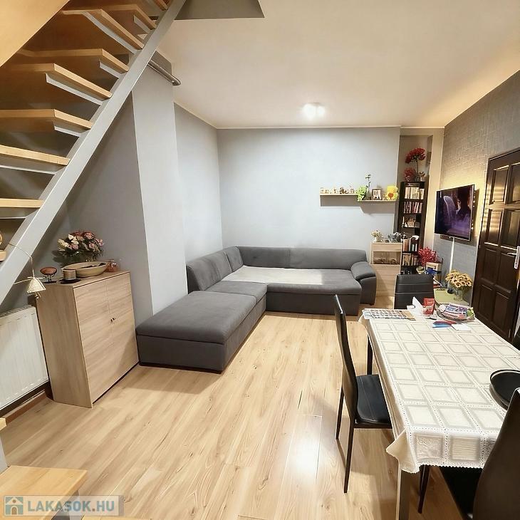Eladóvá vált Vác közkedvelt Burgundia városrészen egy csendes utcában található, belső kétszintes sorházi lakás
