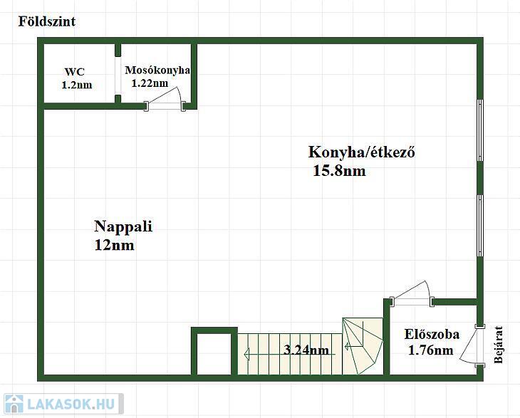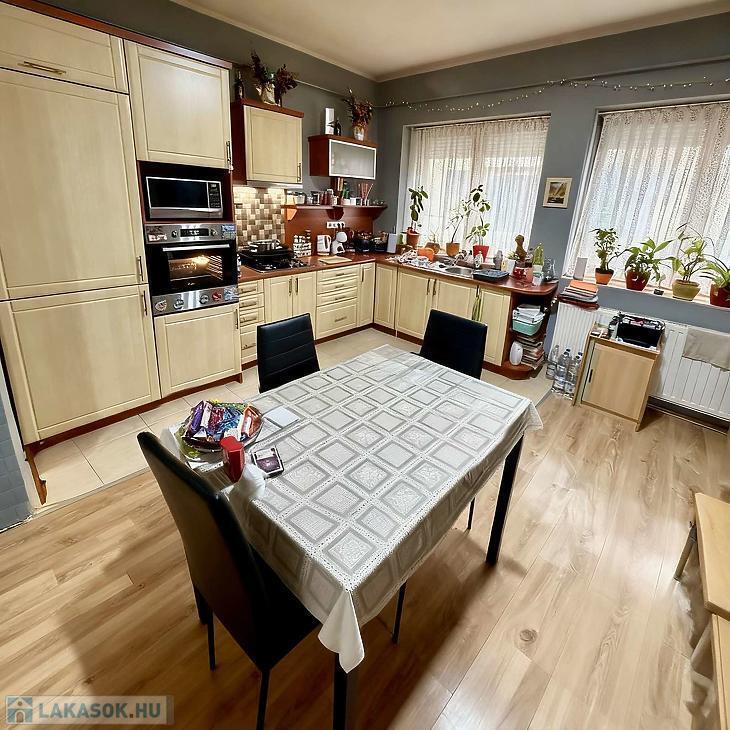 Praktikus elosztásával és kiváló elhelyezkedésével ideális otthont kínál családok számára. A földszinten egy előszoba fogad, innen nyílik a tágas, világos amerikai konyhás nappali, ahol a pár évvel ezelőtt teljesen új burkolatok és új konyhabútor kapott helyet. Ezen a szinten található még a mosókonyha és egy különálló WC is.