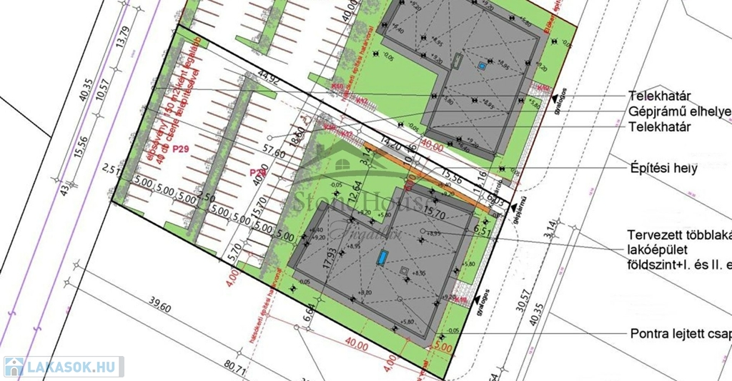 A lakáshoz 2 parkolót kötelező megvásárolni, melyek ára 2 M Ft/db.