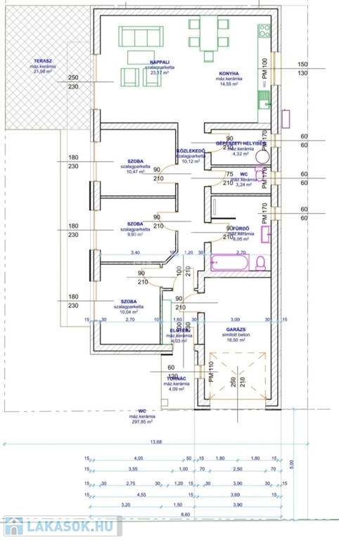 Földszintes ikerház nettó 98 nm hasznos lakótér 38 nm-es terasszal és 16,5 nm garázzsal eladó!