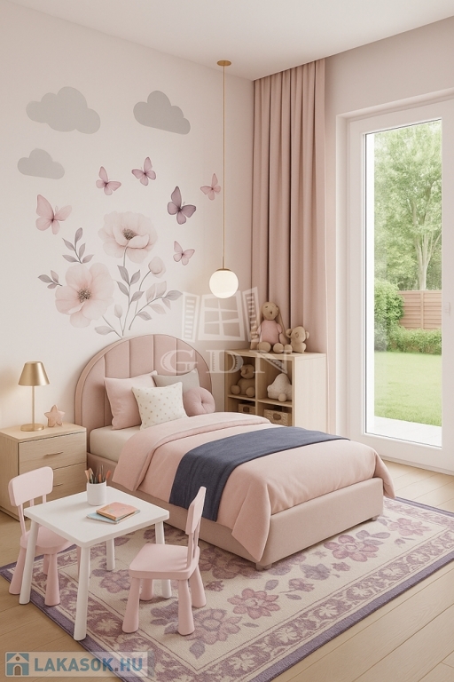 Minden hálószobából közvetlen kijárat nyílik a kertbe, így a család minden tagja élvezheti a privát, zöld környezetet.