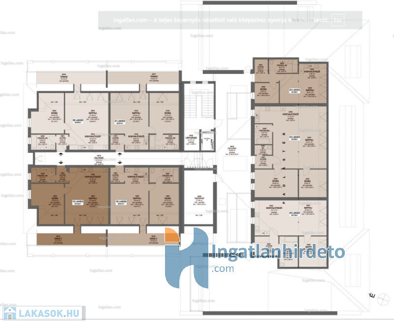 Összesen 21 db liftes lakás, többségében fedett VIP erkélyekkel