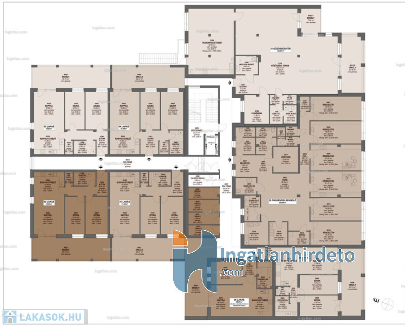 Közös szociális helyiségek: 23,45 m²