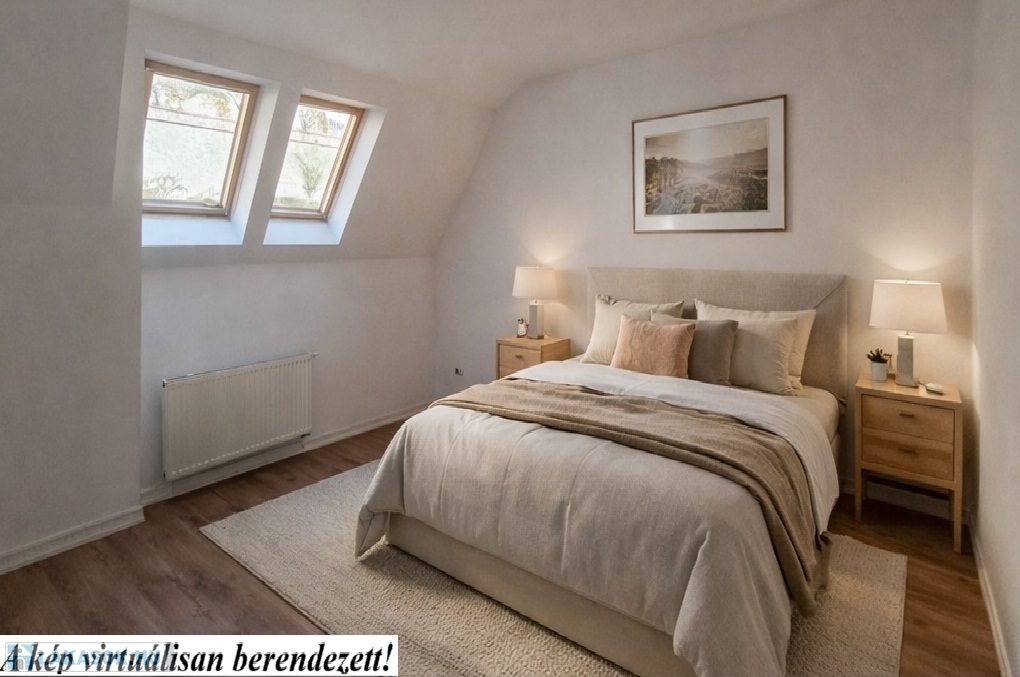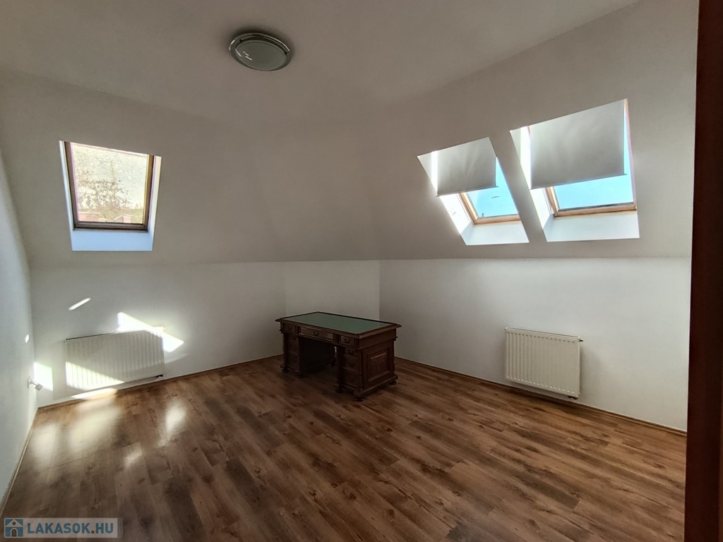 A tetőtér a 2000-es évek elején teljes körű felújításon esett át – beleértve a teljes tetőcserét is. A 105 m²-es lakás elrendezése praktikus és otthonos: három különálló szoba, egy amerikai konyhás- étkezős nappali, tágas fürdőszoba káddal és WC-vel, valamint külön vendég WC. A burkolatok járólap illetve a szobákban szalagparketta.