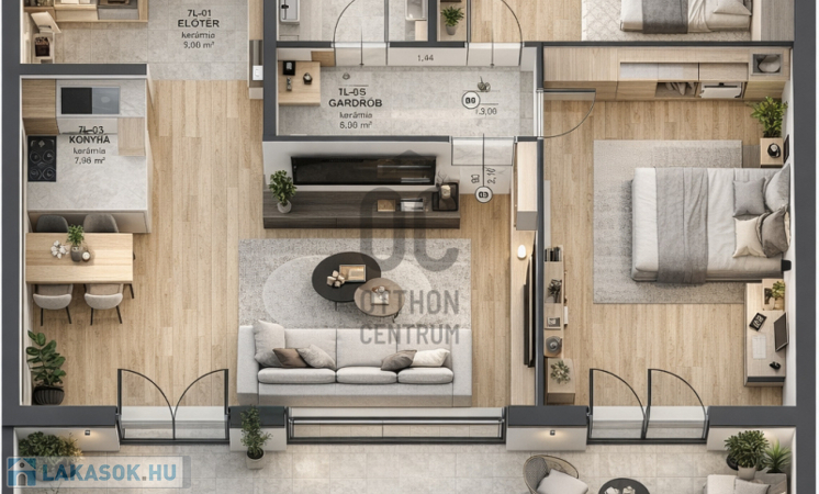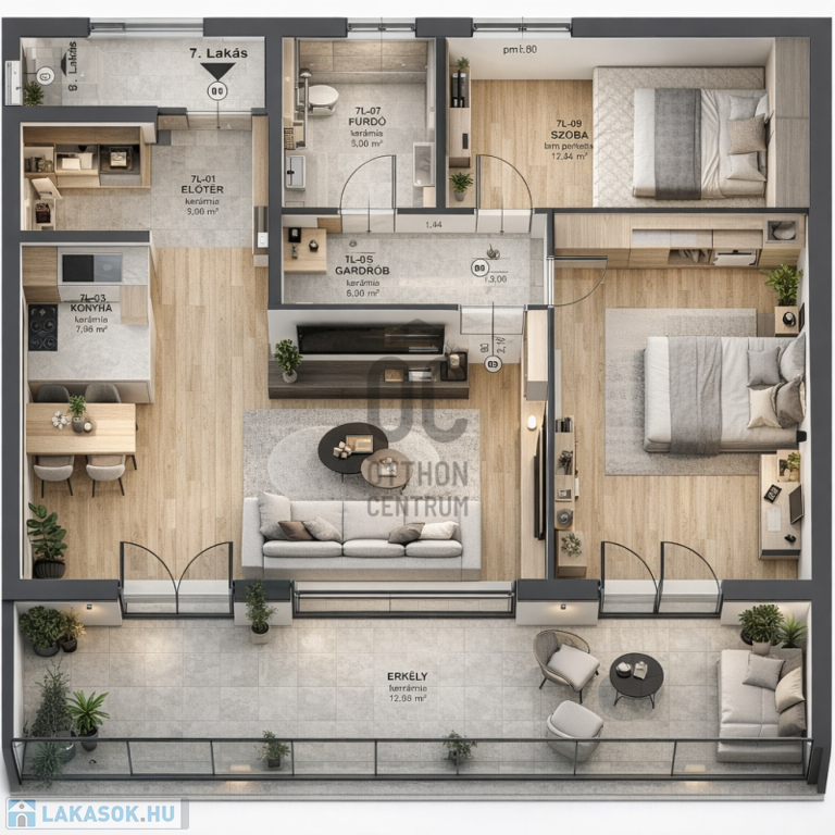 -Átgondolt, praktikus elrendezés, a lakás alapterülete 71,40 nm