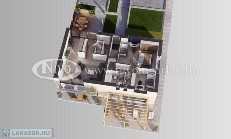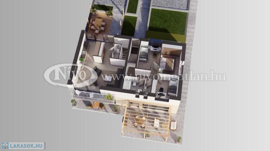 Az exkluzív kivitelezésű, három szinteltolásos társasházban (ikerház jellegű) 2 db belső kétszintes (egy 135,62 m2 és egy 97,88 m2) saját kertkapcsolatos lakás