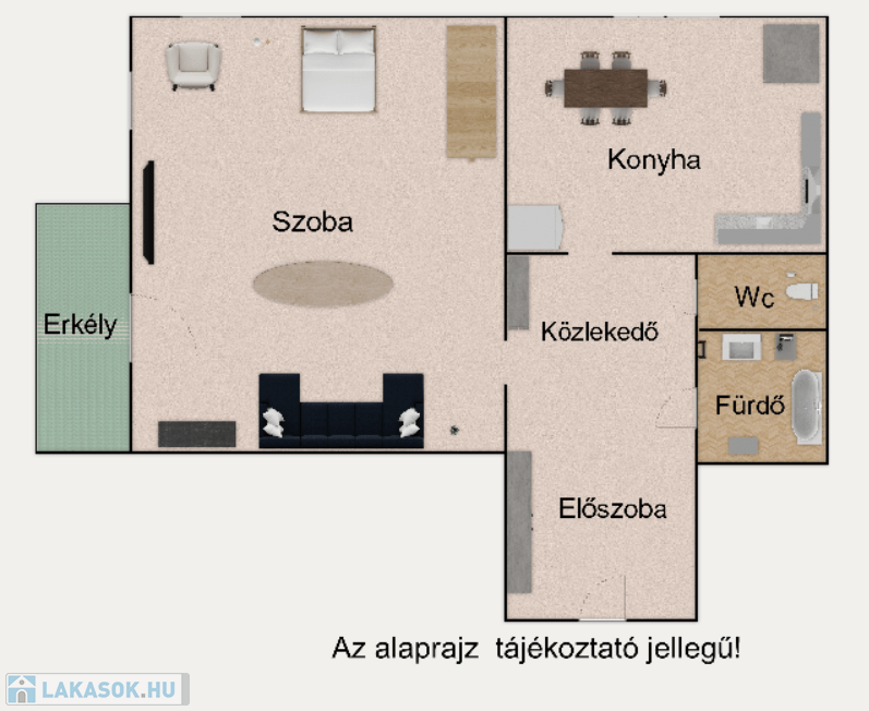 A lakás átlagos állapotú, kényelmes elrendezésű, tágas előszoba és konyha amelyben elfér az étkező is valamint egy nagy szoba és a fürdő külön wc kialakítással.