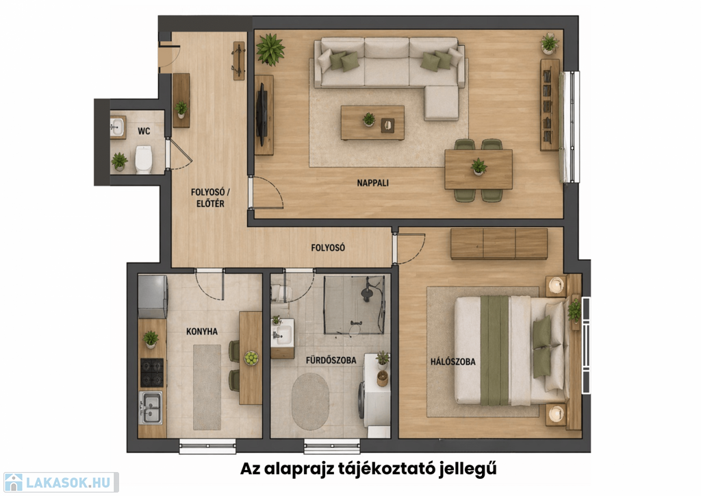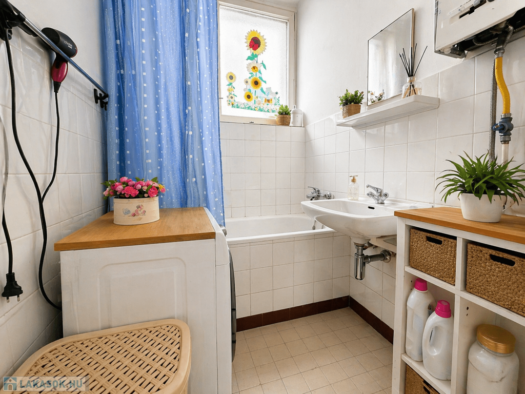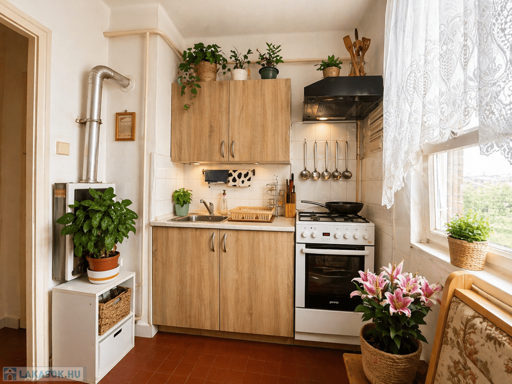 A lakás erkéllyel is rendelkezik, ami tovább növeli a komfortérzetet és a hasznos életteret.